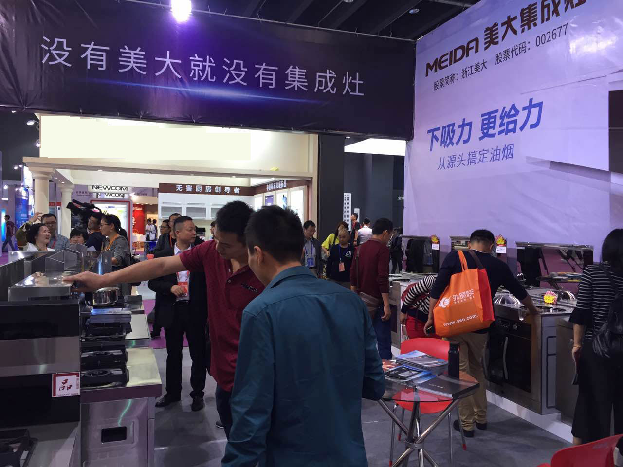 美大集成灶充分体现了开放式厨房的优势,致力于科研环保,专注集成灶十余年,在本次展会上给国人交上了一份满意的答卷,更因其先进的技术和高效的吸烟率引起了境外客商的关注。美大展馆内前来了解咨询的顾客络绎不绝,参展期间一直挤满了人,超高人气羡煞旁人。